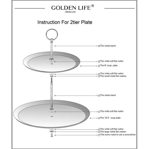 | Description | Geometric linear Modern pattern Two tier Fruit Plate Cake Tray Banquet Pastry Tray with real gold design |